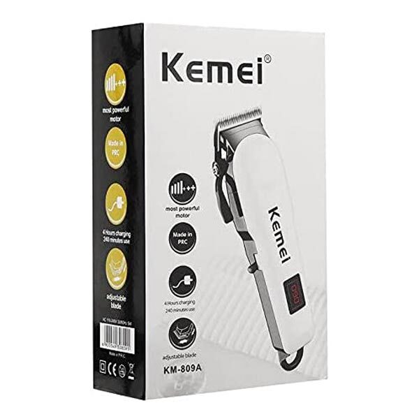ماكينة حلاقة كيمي لحلاقة الشعر والذقن تأتي مع موتور قوي بها شاشة للإظهار وقت الشحن تعمل بالشحن الكهربائي تحتوي العلبة علي 4 أمشاط بالإضافة الي فرشاة تنظيف وزجاجة الزيت.